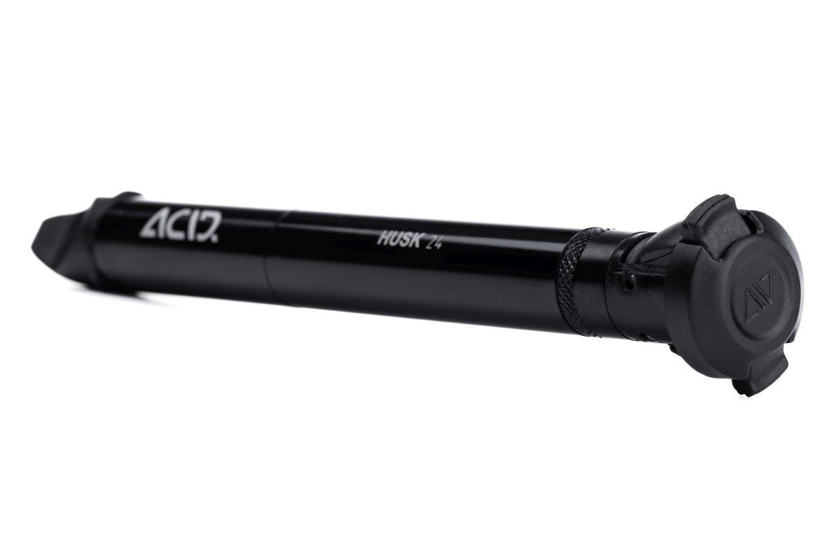Mit der ACID Lenkerhalterung für das Multitool HUSK lassen sich die Metall-Tubes des HUSK sicher und unsichtbar im Lenker versenken. Lenkerendstopfen entfernen, HUSK in die Lenkerhalterung schrauben und in den Lenker schieben. Dadurch werden die Gummis der Lenkerhalterung gequetscht und klemmt sich im Lenker fest.