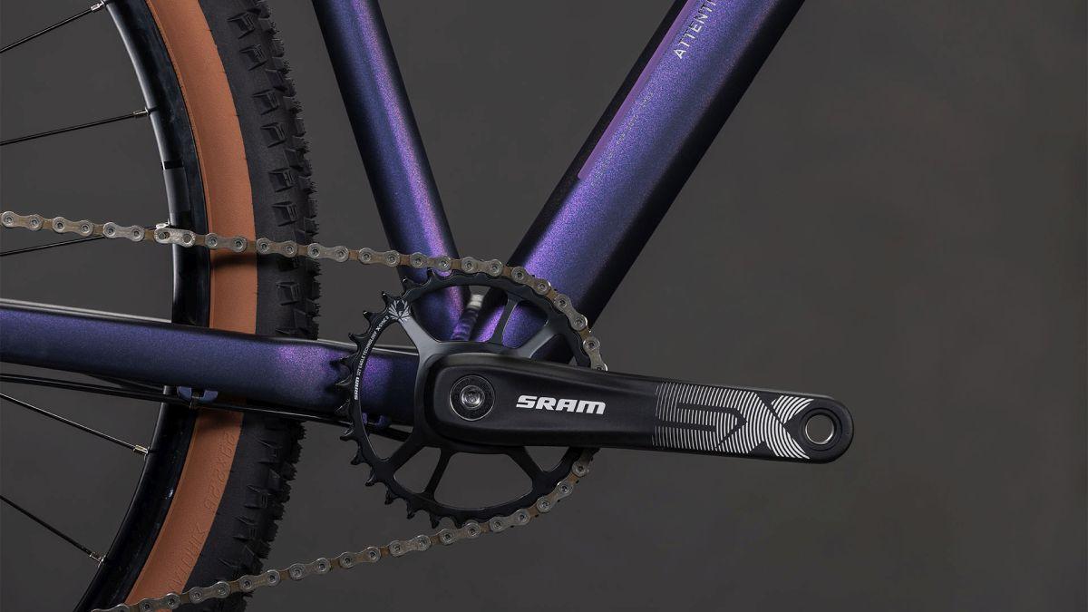 Mit seinem schlanken Chassis (nachrüstbar mit einer versenkbaren Sattelstütze) zieht das Attention SLX alle Blicke auf sich – und auch seine sorgfältig ausgesuchten Komponenten sind in Sachen Performance und Zuverlässigkeit eine Klasse für sich. Da wäre beispielsweise eine einfach einstellbare Judy Silver Luftfedergabel von RockShox, die sämtliche Schläge und Ruckler auf dem Trail butterweich abdämpft und für 1a-Lenkpräzision sorgt. Oder die Sram Eagle SX 12-fach Schaltung mit ihrem weiten Übersetzungsbereich, die nicht nur supereinfach zu bedienen ist, sondern auch top präzise von Gang zu Gang wechselt. Die hochwertige Ausstattung komplett machen leistungsstarke hydraulische Shimano Scheibenbremsen und maximal griffige 2.25 Zoll Reifen von Schwalbe. Keine Frage, dieses Bike kann schön und funktionell!