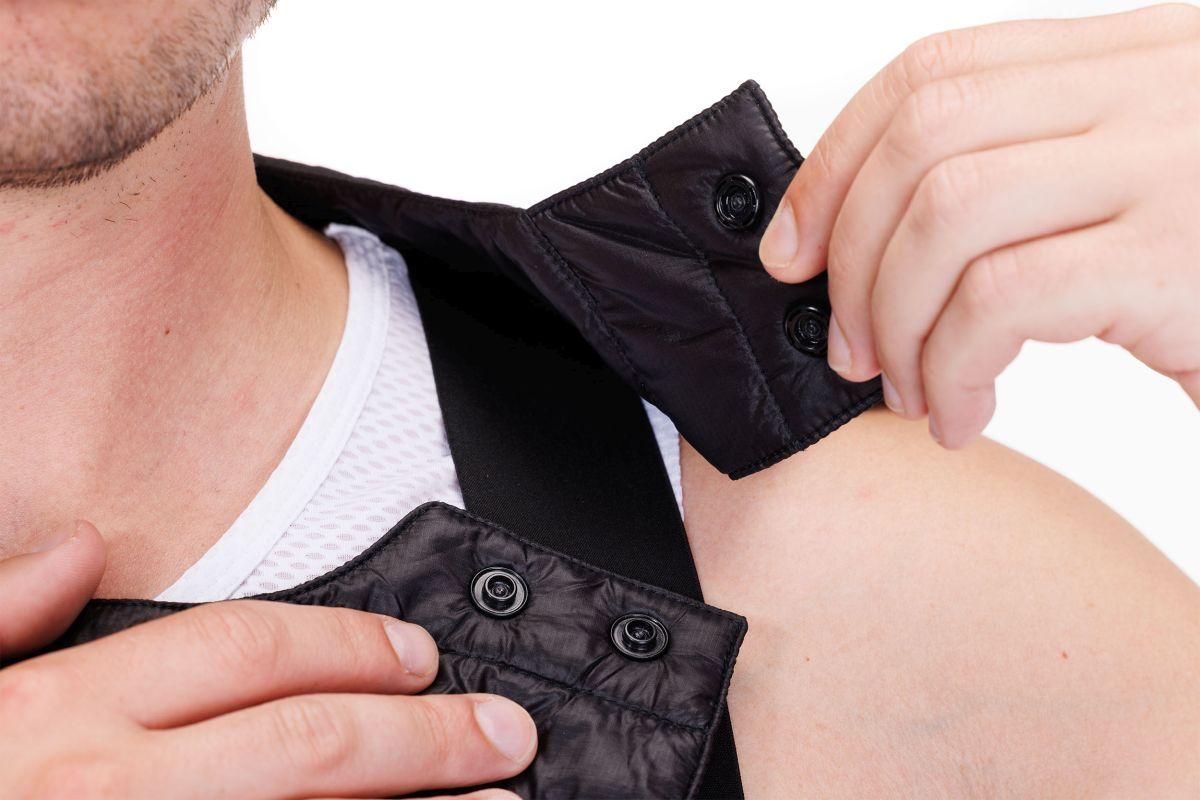 Früher stopften sich Radprofis für die Abfahrt Zeitungspapier vorne unters Trikot – als Schutz gegen kalten Fahrtwind. Heute gibt es das CUBE Funktionstuch Light Iso Layer. Einfach Kopfausschnitt um den Hals legen, Druckknopf schließen und unter dem Trikot glattstreichen. Es ist superleicht, winddicht und lässt sich in der eingebauten Mini-Tasche klein zusammenpacken.