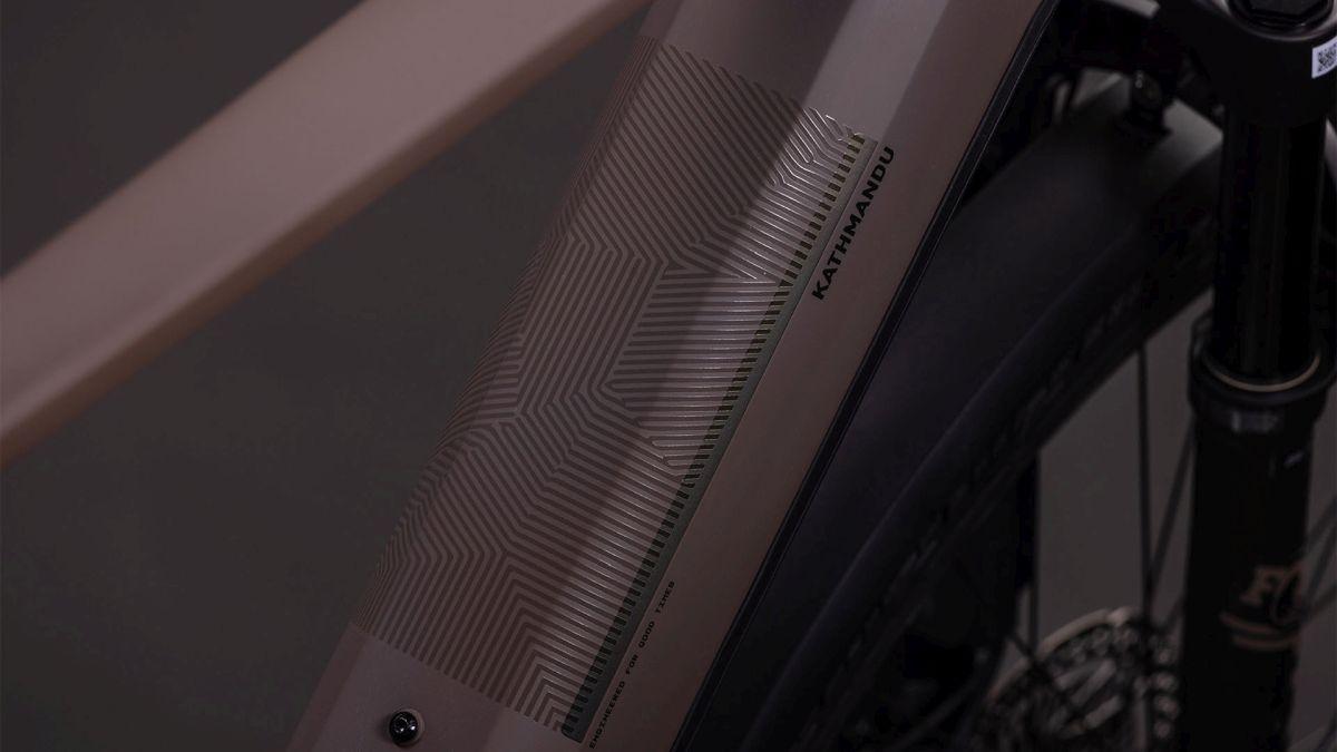 Der Rahmen des CUBE Kathmandu Hybrid sieht auf den ersten Blick vielleicht unspektakulär aus – auf den zweiten erschließen sich jedoch seine Eleganz und Klasse, außerdem die vielen Innovationen und cleveren Details. Dabei ist der samt 800 Wh PowerTube Akku ästhetisch und sauber ins Design integrierte CX Motor von Bosch nur eins der Highlights. Ein weiteres ist unsere Efficient Comfort Geometry, die harmonisch mit der 100 mm Federgabel Hand in Hand arbeitet, was die Kontrolle vor allem bei schwierigen Bedingungen optimiert. Dazu die interne Zugverlegung, die den cleanen Look des Chassis unterstreicht. Was noch? Ein vielseitiges, beinahe unzerstörbares UDH für einfache Ersatzteilverfügbarkeit, ein integrierter Kettenschutz und unser stabiler, robuster, überaus formschöner integrierter Gepäckträger IC 3.0, auf dem alles Platz findet, was auf Abenteuertour mit muss.