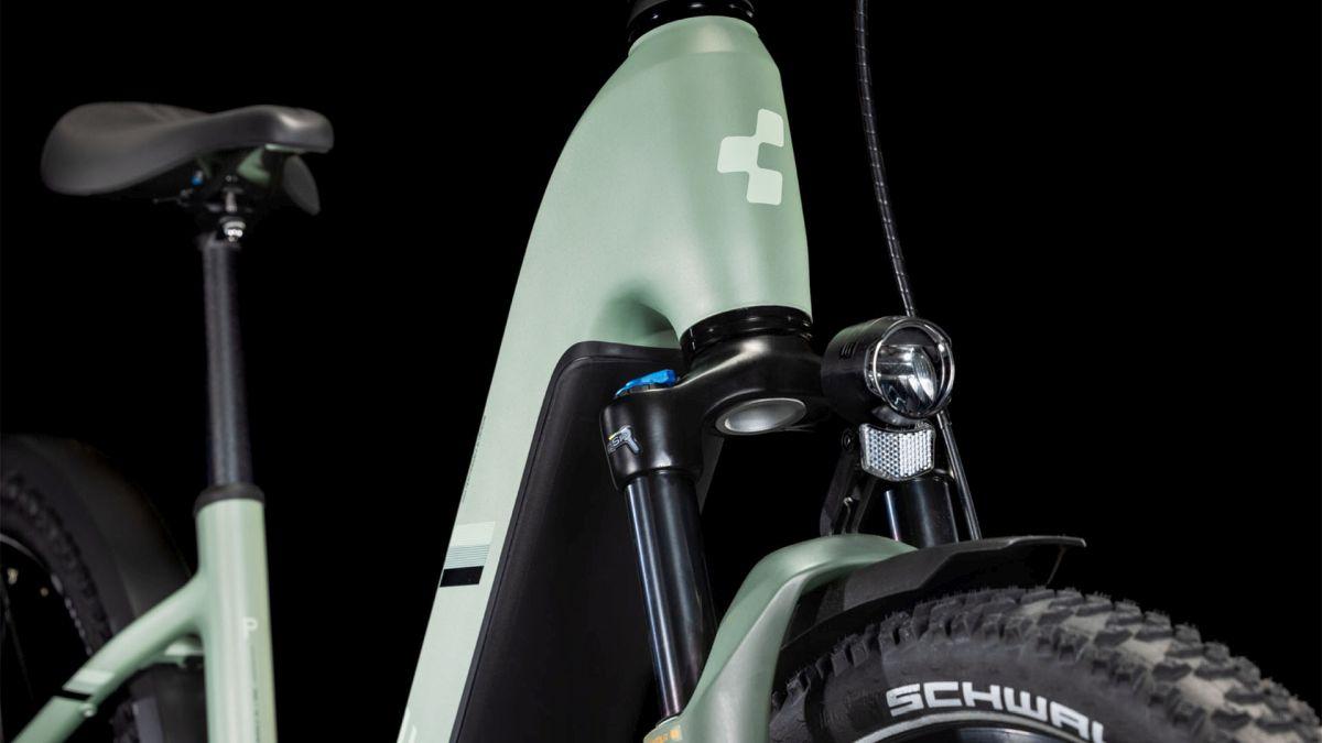 Der Tiefeinsteiger-Rahmen des Nuride Hybrid hält, was sein Name verspricht – einfaches, unkompliziertes Auf- und Absteigen sind damit garantiert. Doch da ist noch mehr: Neben einer Federgabel mit 100 mm Federweg für ein Plus an Fahrkomfort und Kontrolle haben wir das Chassis mit großzügiger Reifenfreiheit (sogar inklusive der mitgelieferten Schutzbleche) ausgestattet. Im Inneren verlaufende Züge unterstreichen die cleane Optik des Rahmens und verursachen kaum Wartungsaufwand. Ebenso harmonisch ins Design integriert sind der Bosch CX Antrieb und der 800 Wh starke PowerTube Akku. Außerdem gibt's einen Kettenschutz sowie ein UDH für einfachere Ersatzteilverfügbarkeit. Was noch? Serienmäßig verbaute Schutzbleche, Lichter und ein Seitenständer. Da kann das nächste Touren-Abenteuer kommen!