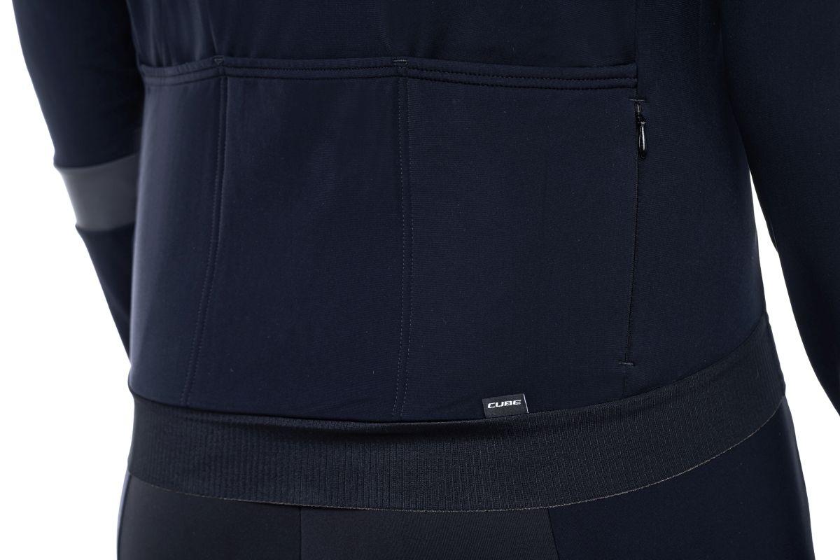 Unser CUBE Road/XC Langarmtrikot im athletischen CUBE V-Shape ist am Rumpf eng anliegend und bietet im Schulterbereich viel Bewegungsfreiheit. Dank durchgehendem Reißverschluss vorne lässt es sich easy an- und ausziehen. Der silikonbedruckte Saum und der vorgeformte Kragen garantieren einen sicheren Sitz, ohne dass Zugfluft unangenehm eindringt. In der 3-teiligen Rückentasche ist noch eine seitliche, wasserdichte Zipper-Tasche versteckt – praktisch für Wertsachen, wie Geldscheine oder Smartphone.