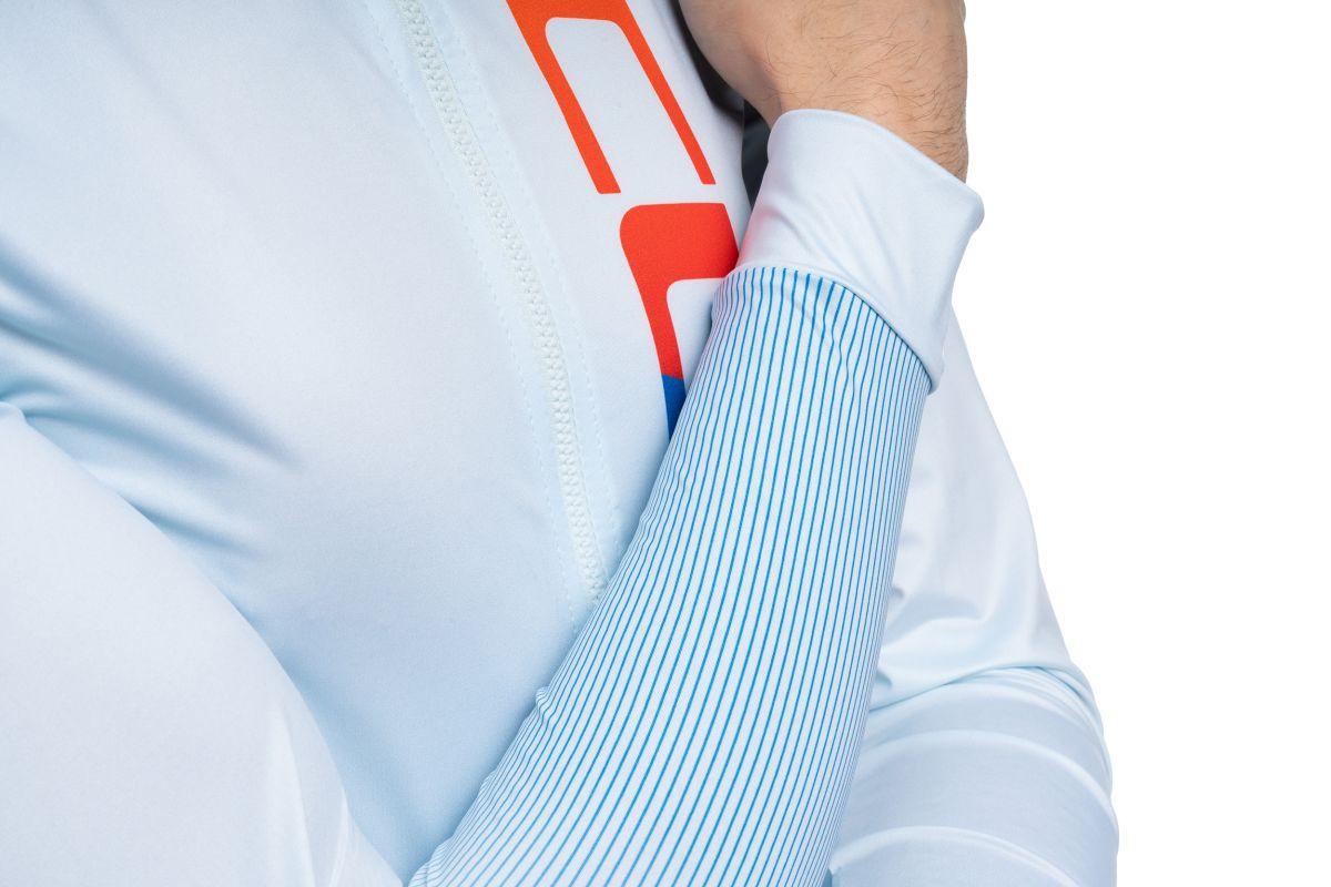 Hier kommt unser Design & Innovation Award Winner 2025! Das CUBE ROAD/XC Trikot UV-Schutz langarm zeichnet sich durch sein ultraleichtes Material aus, das speziell für hohe Temperaturen und intensive Sonneneinstrahlung entwickelt wurde. Die enganliegende Passform sorgt für aerodynamische Vorteile, während das atmungsaktive Material effektiv Feuchtigkeit abtransportiert und gleichzeitig UV-Schutz 50+ bietet. Des weiteren bietet das Jersey einen verlängerten Nackenbereich, für mehr Schutz bei starker Sonneneinstrahlung. Ein weicher Innensaum mit breitem Silikonstreifen verhindert das Verrutschen des Trikots, sodass es stets optimal sitzt. Reflektierende Elemente erhöhen die Sichtbarkeit in der Dämmerung oder bei schwachen Lichtverhältnissen, was die Sicherheit auf der Straße verbessert.