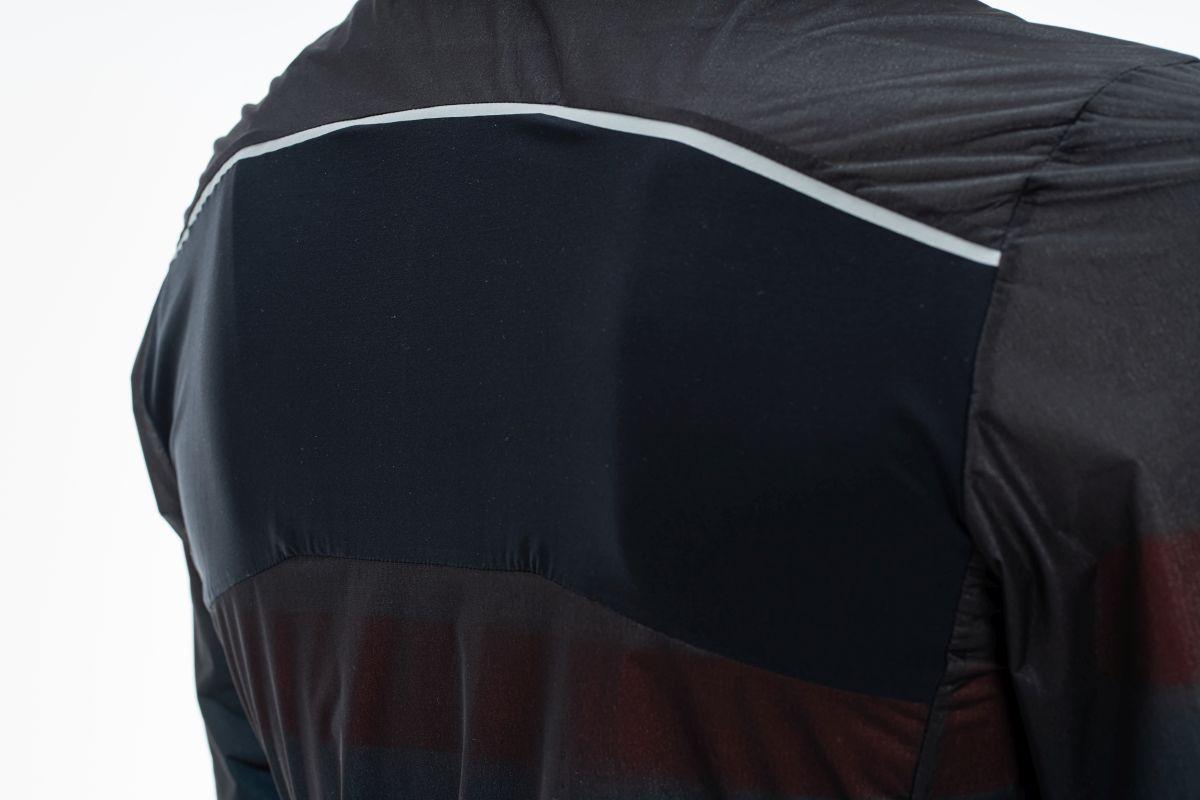 enganliegender Kragen für extra Windschutz, wasserabweisend, geringes Packmaß, reflektierende Elemente, elastischer Saum, Ventilationseinsätze, Model ist 184 cm groß, Model trägt Größe M