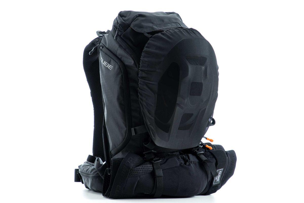 Ein Highlight für Enduro-Fans: Der VERTEX 16 ist unser High-Class-Rucksack, vollgepackt mit sinnvollen Features. Dank ergonomisch geformter Schultergurte, Hüftgurt und dem von CUBE entwickelten NF Ergonomics Rückensystem sitzt er bei allen Fahrmanövern optimal am Rücken. Dein Rücken ist gut polstert und belüftet. Der VERTEX 16 ist ausgestattet mit einem SAS-TEC LB-L Protektor, der gerade mal 150 g wiegt. Protektorenhalterung, Helmhalterung, Brillenfach, Raincover ... alles dabei. Innentaschen, Hüftgurttasche, ein Smartphone-Fach und zwei seitliche Werkzeugfächer bringen Ordnung in deinen Bike-Tag. Trinkblasen-Kompatibilität ist Ehrensache. Und: Das Innenfutter ist nicht schwarz, sondern farbig, damit du dich im Rucksack schneller und besser zurechtfindest.