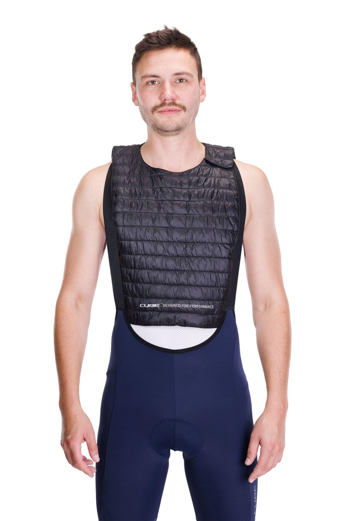 Früher stopften sich Radprofis für die Abfahrt Zeitungspapier vorne unters Trikot – als Schutz gegen kalten Fahrtwind. Heute gibt es das CUBE Funktionstuch Light Iso Layer. Einfach Kopfausschnitt um den Hals legen, Druckknopf schließen und unter dem Trikot glattstreichen. Es ist superleicht, winddicht und lässt sich in der eingebauten Mini-Tasche klein zusammenpacken.