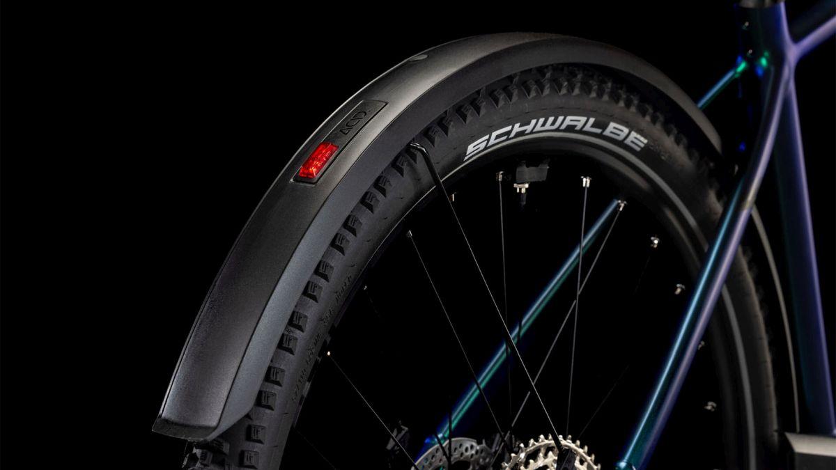 Wenn wir etwas können, dann elegante Rahmen mit 1a-Handling bauen – doch bei der Entwicklung des Nuride Hybrid haben wir uns in Sachen funktioneller Ästhetik selbst übertroffen. Neben einer Federgabel mit 100 mm Federweg für ein Plus an Fahrkomfort und Kontrolle haben wir das Chassis mit großzügiger Reifenfreiheit (sogar inklusive der mitgelieferten Schutzbleche) ausgestattet. Im Inneren verlaufende Züge unterstreichen die cleane Optik des Rahmens und verursachen kaum Wartungsaufwand. Ebenso harmonisch ins Design integriert sind der Bosch CX Antrieb und der 800 Wh starke PowerTube Akku. Außerdem gibt's einen Kettenschutz sowie ein UDH für einfachere Ersatzteilverfügbarkeit. Was noch? Serienmäßig verbaute Schutzbleche, Lichter und ein Seitenständer. Da kann das nächste Touren-Abenteuer kommen!