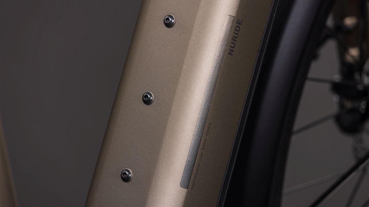 Der Nuride Hybrid Rahmen ist der Inbegriff funktioneller Ästhetik – finden wir zumindest und haben ihm neben unserer Efficient Comfort Geometry auch eine Federgabel mit 100 mm Federweg für ein Plus an Fahrkomfort und Kontrolle sowie großzügige Reifenfreiheit (sogar inklusive der mitgelieferten Schutzbleche) mitgegeben. Im Inneren verlaufende Züge und der integrierte Kettenschutz unterstreichen die cleane Optik. Ebenso harmonisch ins Rahmendesign integriert sind der Bosch CX Antrieb und der 600 Wh PowerTube Akku. On top gibt's serienmäßig verbaute Schutzbleche, Lichter, einen Seitenständer und: unseren formschönen, stabilen semi-integrierten Gepäckträger 2.0. Da kann das nächste Zweiradbenteuer direkt starten, oder?
