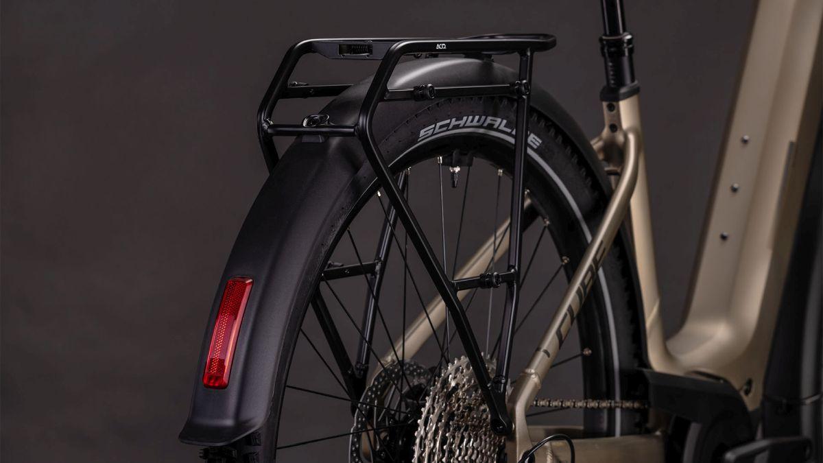 Der Tiefeinsteiger-Rahmen des Nuride Hybrid hält, was sein Name verspricht – einfaches, unkompliziertes Auf- und Absteigen sind damit fix inklusive. Doch da ist noch mehr: Neben einer Federgabel mit 100 mm Federweg für ein Plus an Fahrkomfort und Kontrolle haben wir das Chassis mit großzügiger Reifenfreiheit (sogar inklusive der mitgelieferten Schutzbleche) ausgestattet. Im Inneren verlaufende Züge unterstreichen die cleane Optik. Ebenso harmonisch ins Rahmendesign integriert sind der Bosch CX Antrieb und der 800 Wh PowerTube Akku. On top gibt's einen integrierten Kettenschutz, serienmäßig verbaute Schutzbleche, Lichter, einen Seitenständer und unseren stabilen semi-integrierten Gepäckträger 2.0. Da kann das nächste Zweiradabenteuer direkt losgehen, oder?