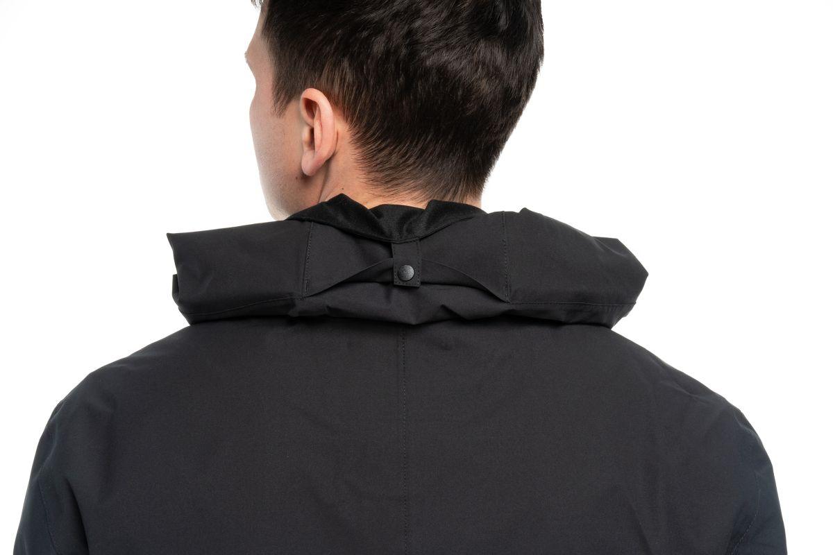 Regular fit, wasserdichtes, atmungsaktives Material mit TPU Membran und 10.000mm Wassersäule (JIS-L-1092 B:2009), Nähte vollständig versiegelt, Helmkompatible Kapuze, Seitentaschen mit Reißverschluss, 2-Wege Reißverschluss vorne: Weitenregulierbarer Saum, Klettverstellung am Ärmelsaum, Model ist 185cm groß und trägt Größe M