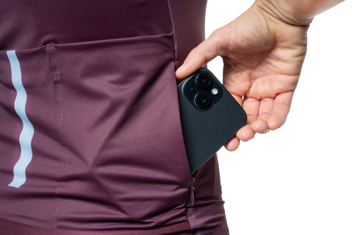 enganliegend, weicher Innensaum mit breitem Silikonband, durchgehender Frontreißverschluss, 3-teilige Rückentasche, wasserabweisende Reißverschlusstasche hinten, widerstandsfähiges und schnelltrocknendes Funktionsaterial, nahtfreier Schulterbereich, reflektierende Elemente, Model ist 168 cm groß, Model trägt Größe S