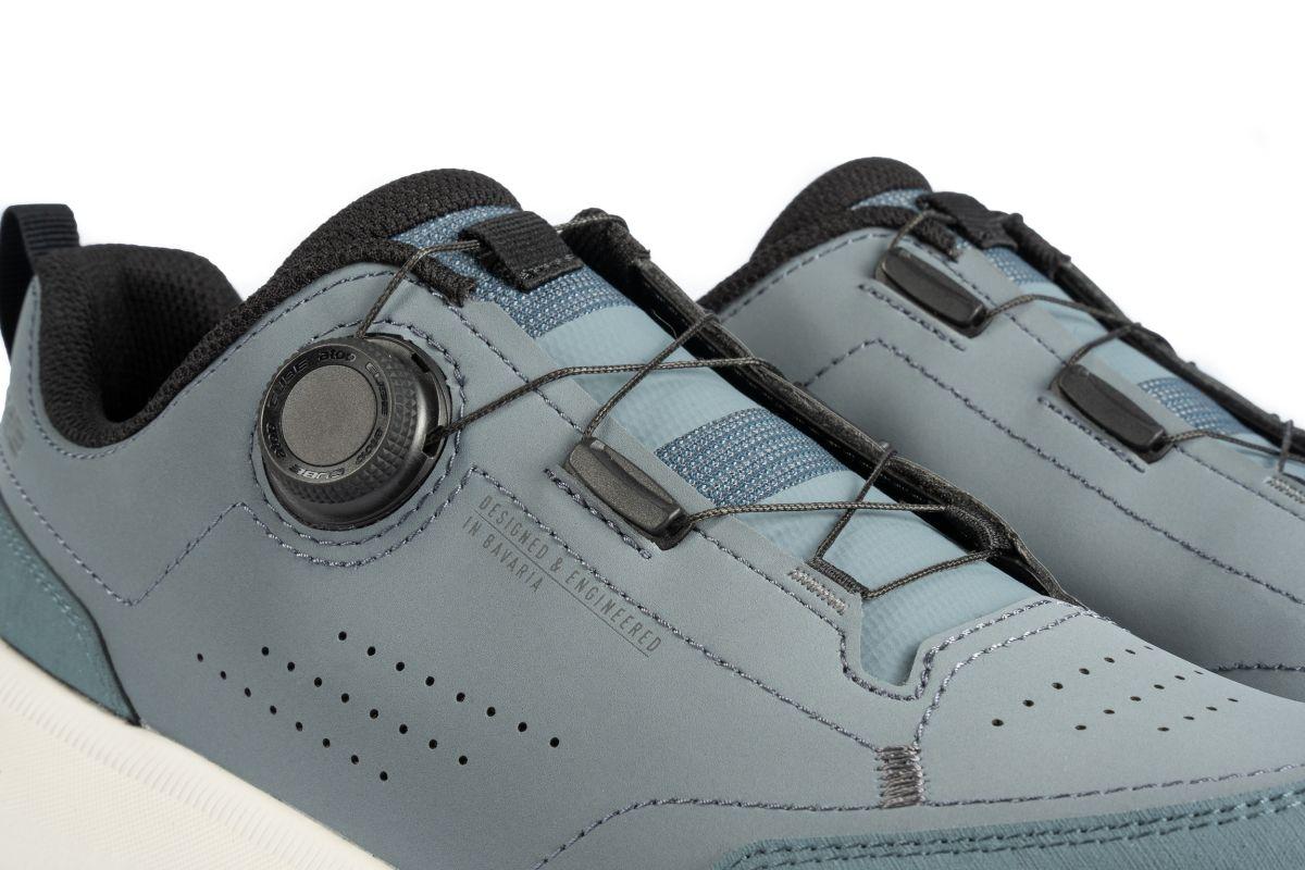 Der CUBE LOXIA PRO Schuh vereint die Griffigkeit und Flexibilität eines Outdoor-Laufschuhs mit der notwendigen Unterstützung für effizientes und komfortables Pedalieren, was die Ermüdung reduziert. Er ist ideal für viele Arten des Radfahrens, einschließlich Touren, Gravel, Enduro-Mountainbiking und alle Arten von E-Biking geeignet. Eine interne Nylon-Verstärkung sorgt für die nötige Steifigkeit beim Pedalieren, während eine stoßdämpfende EVA-Mittelsohle und die neu entwickelte, griffige A-TRACTION Gummimischung exzellente Traktion für Flatpedals sowie guten Komfort und Flexibilität für Laufpassagen abseits des Fahrrads bieten. Eine verstärkte Zehenbox schützt den Fuß, und eine NF Ergonomics-Innensohle bietet optimale Polsterung und Druckverteilung. Der Disc-Verschluss ermöglicht zudem ein schnelles und einfaches An- und Ausziehen.