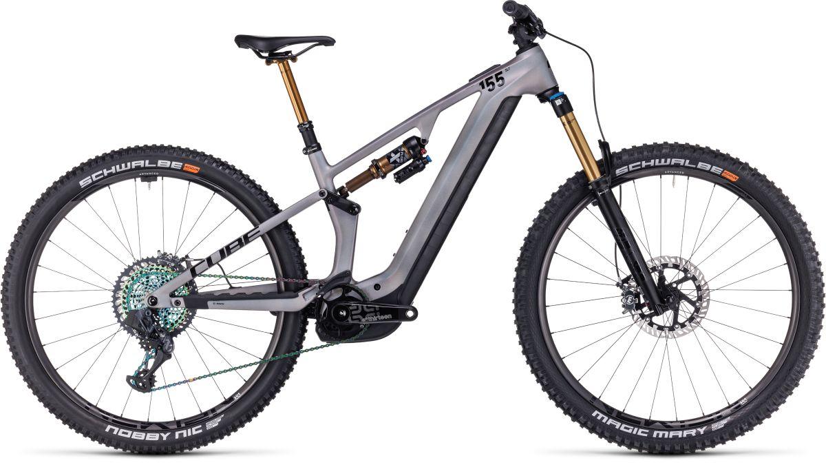 Wenn's um ultimativen All-Mountain-Fahrspaß geht, eröffnet dir dieses Bike neue Horizonte. Sein Name: Stereo Hybrid ONE55 C:68X SLT 750 29, sein Auftritt: revolutionär! Es kommt mit unserem bisher leichtester intube Carbonrahmen für E-Fullys auf die Trails, dazu mit einer Geometrie, wie sie progressiver nicht sein könnte. Das Ergebnis zeigt sich in gnadenloser Trail-Performance im Gelände, bergauf wie bergab. Dabei arbeitet die elektronische Eagle AXS XX1 12-fach Schaltung von Sram harmonisch mit dem Bosch CX Motor der vierten Generation (mit 750 Wh starkem Akku) zusammen – für perfekt dosierten Vortrieb, viel Reichweite und saubere, geschmeidige Schaltvorgänge, den ganzen (Trail-)Tag lang. Bei so einem potenten Set-up dürfen natürlich auch die Newmen Advanced Laufräder nicht fehlen, auf die wir Schwalbe Magic Mary und 2.4 Zoll Nobby Nic Reifen aufgezogen haben. Kraftvolle Bremsmanöver gehen auf das Konto der leistungsstarken hydraulischen MT7 Scheibenbremsen von Magura mit großen Rotoren. Und weil wir eine Fox 36 Factory Grip2 Federgabel samt passendem Float X Factory Dämpfer und eine versenkbare Sattelstütze verbaut haben, behältst du bergab immer die volle Kontrolle, selbst in extrem ruppigen Gelände.
