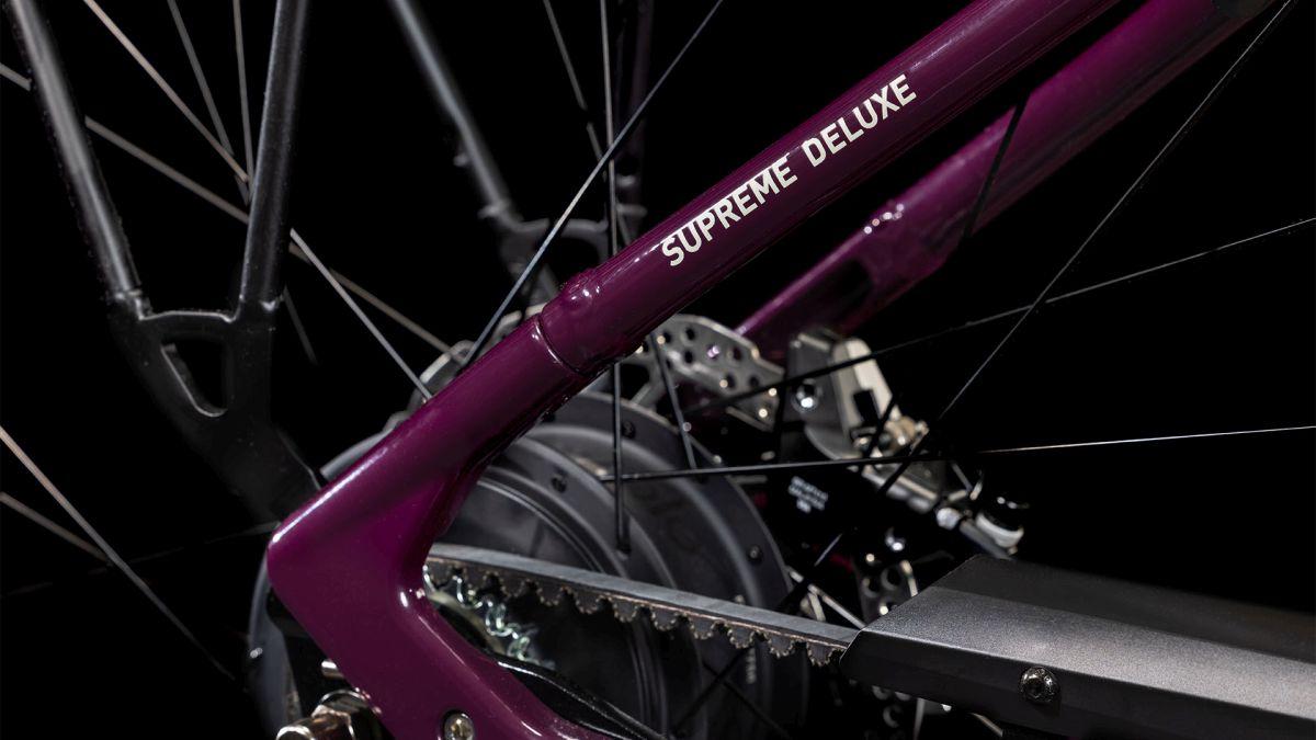 Mit seinem semi-integrierten Gepäckträger, Schutzblechen, Seitenständer und Beleuchtungssystem steht das Supreme Hybrid Deluxe Pro 625 für den täglichen Arbeitsweg durch die City ebenso bereit wie für die Wochenendausfahrt ins Grüne. Sein geräuscharm arbeitender, wartungsarmer Gates Zahnriemen und die stufenlos verstellbare City Nabenschaltung von Enviolo überzeugen mit hoher Funktionalität und Einfachheit. Hydraulische Scheibenbremsen packen bei Bedarf kräftig zu und bringen das Bike sicher zum Stehen. Top Unterstützung im Vorwärts ist das Spezialgebiet des Bosch Performance Antriebs, der von einem 625 Wh Akku gespeist wird. Last, but not least: eine einfach einstellbare Luftfedergabel, der verstellbare Vorbau und das ebenso komfortable wie elegante Tiefeinsteiger-Design.