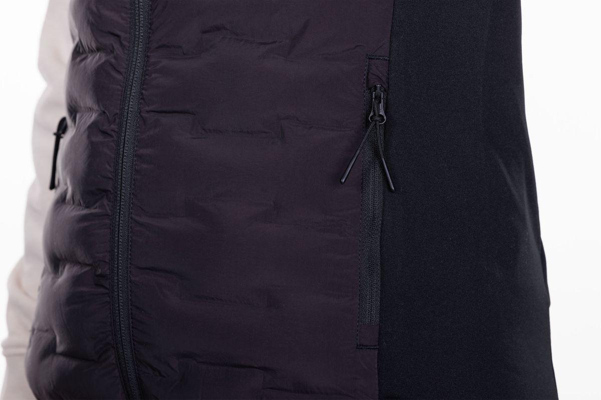 partiell wattiert, seitliche Eingriffstaschen mit Reißverschluss, sportliche Passform, durchgehender Frontreißverschluss, elastischer Saum, Logo-Druck, Model ist 168 cm groß, Model trägt Größe S